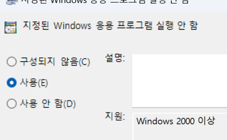 지정된 Windows 응용 프로그램 실행 안함으로 이동