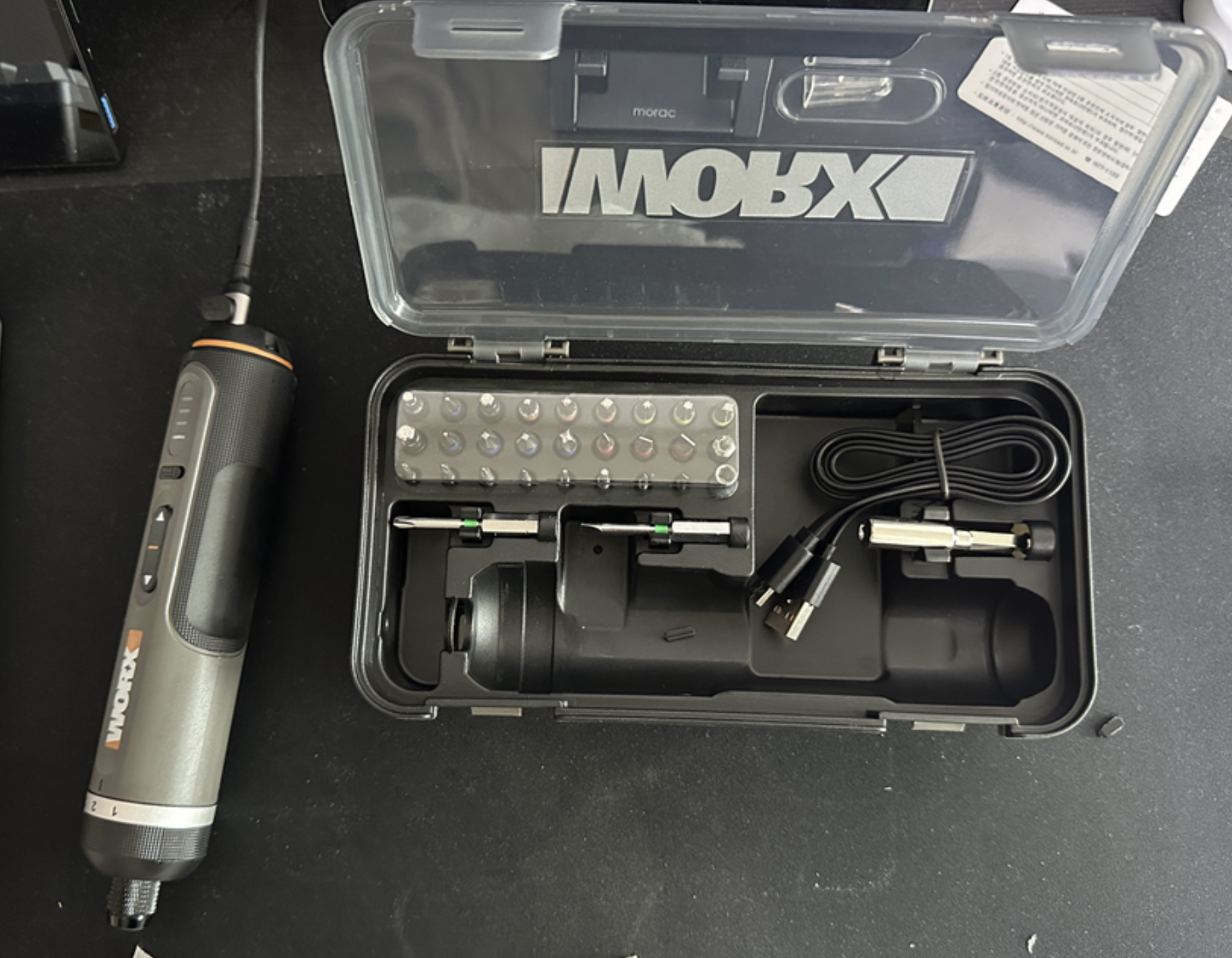 박스를 열면 플라스틱 케이스에 모든 구성품이 들어 있습니다.
